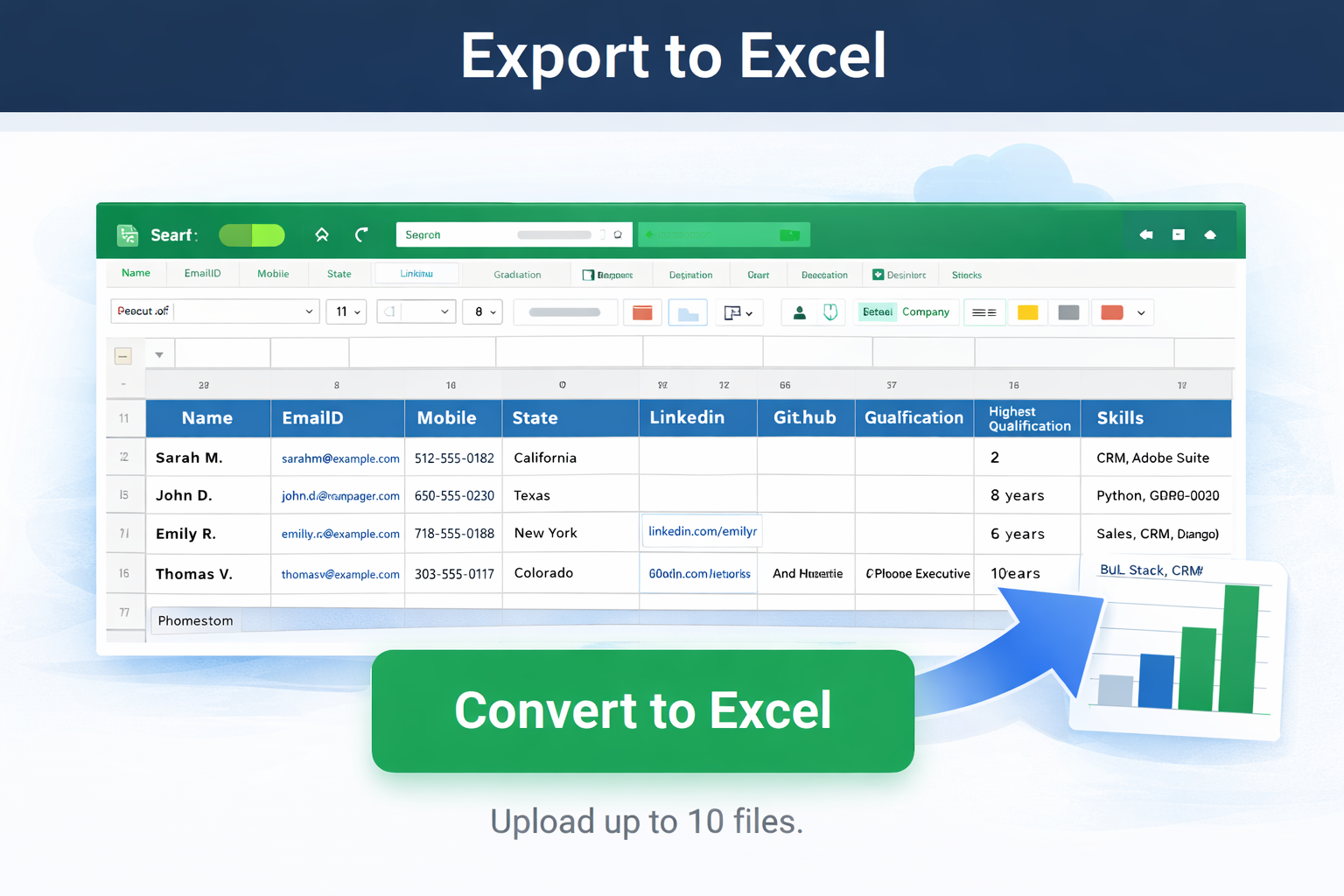 Save hours of manual work. Upload resumes, extract structured data, and export to Excel in seconds.